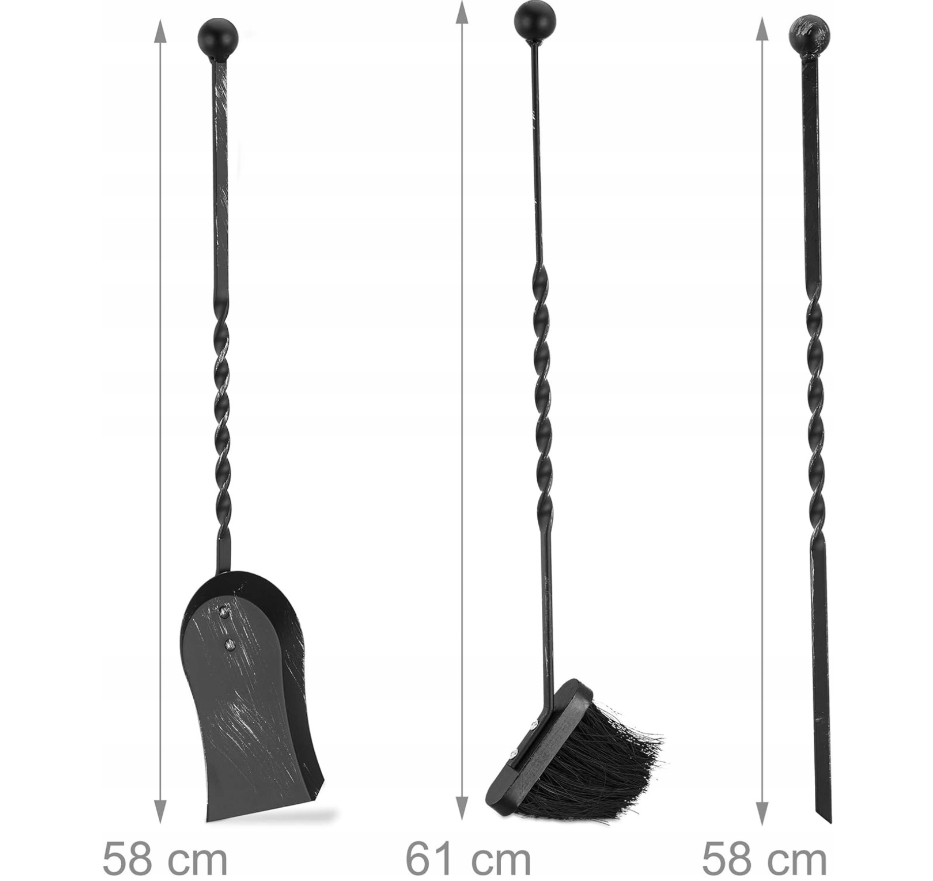Praktická a zároveň pekná sada, ktorá pri krbe vyzerá ako kovaná. Vďaka dlhým rukovätiam upraceš popol pohodlne a bezpečne, bez zbytočného ohýbania. Všetko je uložené v stabilnom stojane, takže náradie je vždy poruke a okolie krbu ostane upratané.